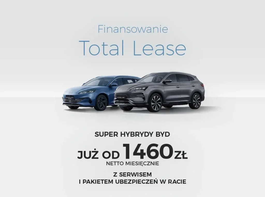 * Oferta leasingu skierowana do przedsiębiorców, ważna do 31 marca 2025 r. Kalkulacja leasingu 101% dla modelu Sealion 7 wykonana przy następujących założeniach: wpłata wstępna 40% ceny pojazdu, okres leasingu 35 miesięcy, wysokość wykupu 1% ceny pojazdu, a dla modeli Seal, Seal U i Dolphin: wpłata wstępna 25% ceny pojazdu, okres leasingu 35 miesięcy, wysokość wykupu 1% ceny pojazdu. Szczegóły oferty sprawdź u autoryzowanych dealerów BYD. Niniejsza informacja nie stanowi oferty w rozumieniu przepisów Kodeksu cywilnego. Zawarcie umowy jest uzależnione od oceny zdolności finansowej potencjalnego leasingobiorcy. Podmiotem zawierającym umowy leasingu jest PKO Leasing S.A. z siedzibą w Warszawie (00-116) przy ul. Świętokrzyskiej 36.