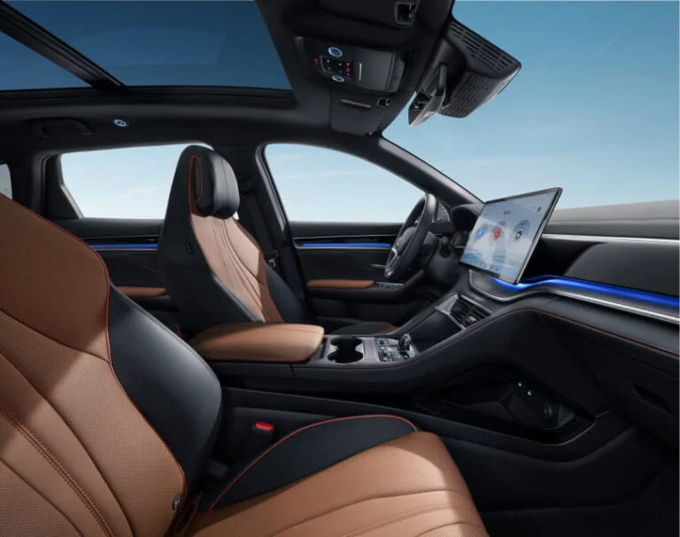 Wnętrze BYD SEAL U DM-i ma futurystyczny design, który podkreśla zawieszona konsolą środkową z dwuwarstwowym schowkiem, który łączy w sobie praktyczność i elegancję.